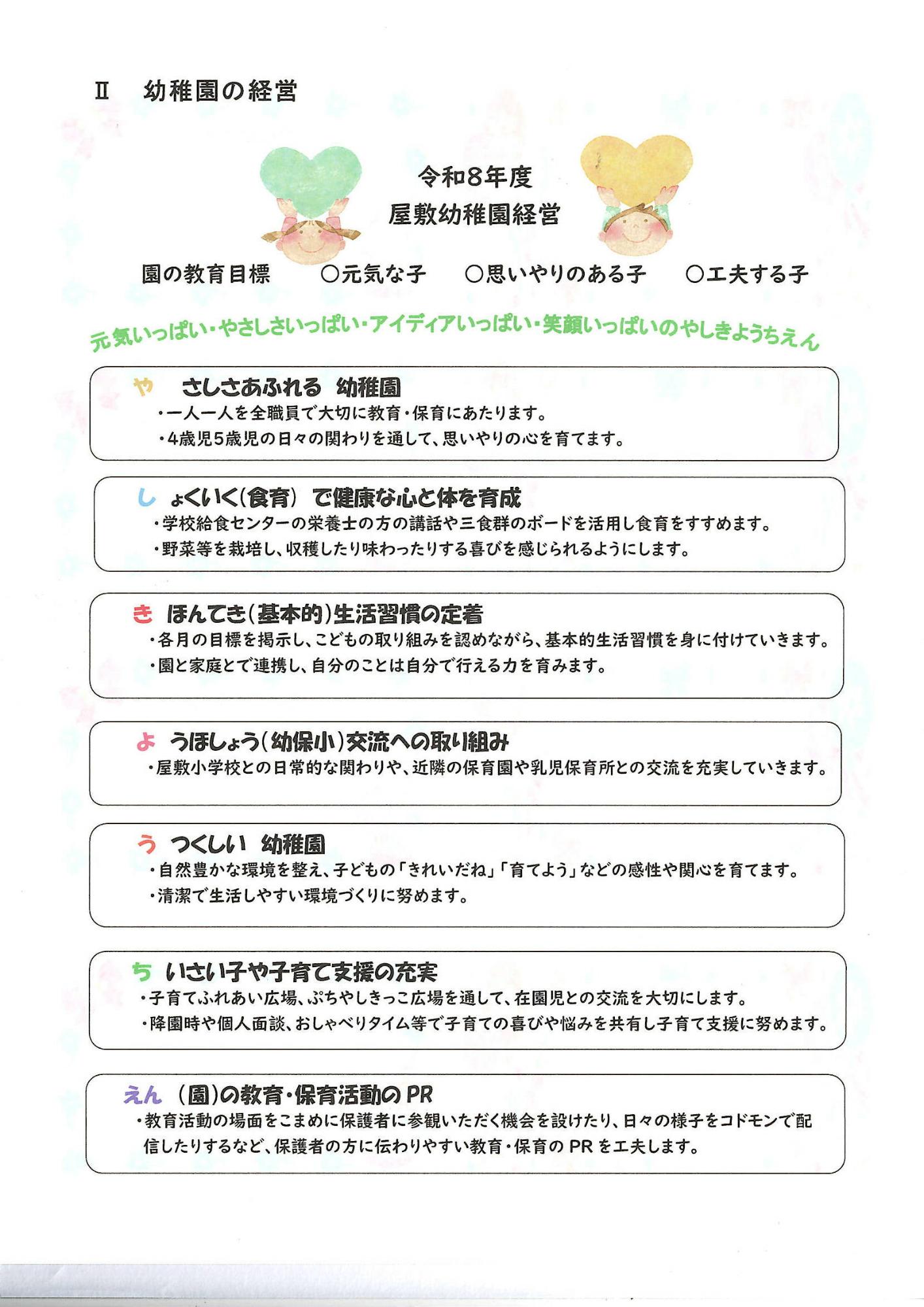 令和8年度の屋敷幼稚園経営